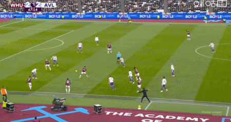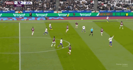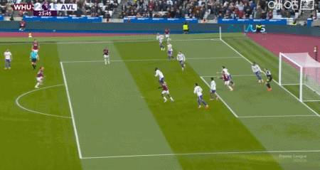 上咪咕独家看英超第24分钟,波茨助攻,鲍恩门前点射破门,西汉姆联2-1维拉