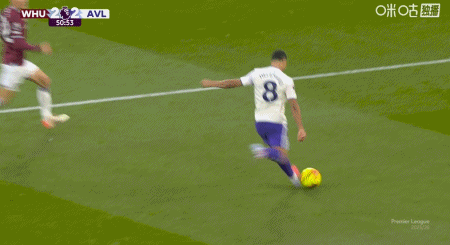 上咪咕独家看英超第50分钟,蒂勒曼斯传中,罗杰斯停球射门一气呵成,维拉2-2西汉姆联